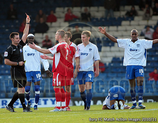 Not one of his better moments, recieving a 2nd Yellow and ultimately a Red card against Bury