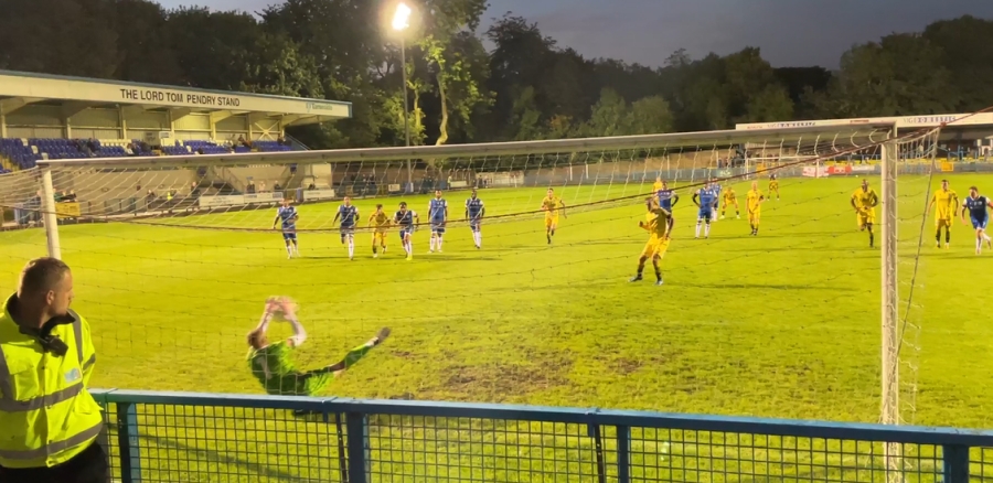 opportunity from a free kick. Paul Dawson, who had a superb match