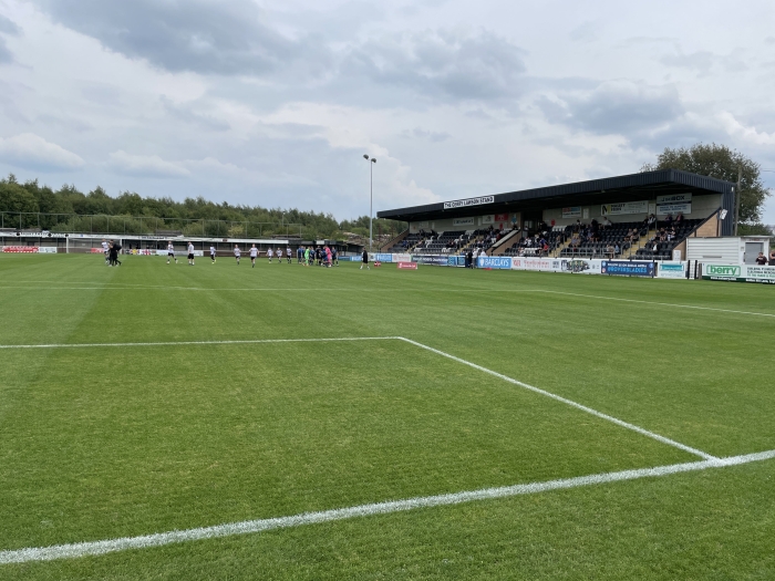 The impressive main stand at Prescot Cables