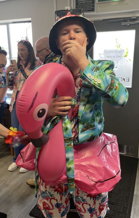 bright yellow outfit. Flamingo man, Adam Lickley, far from being deflated,